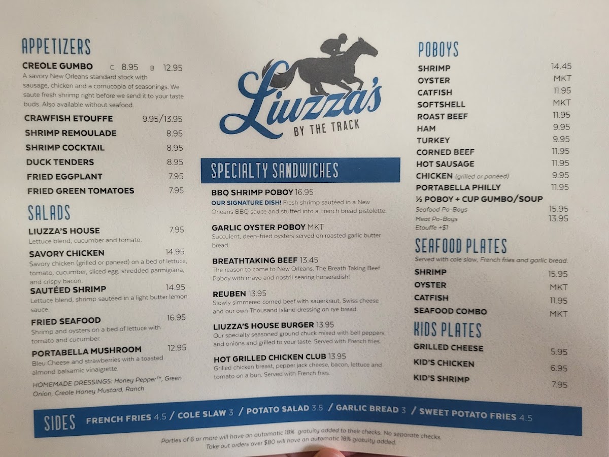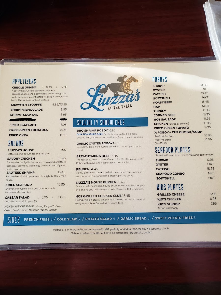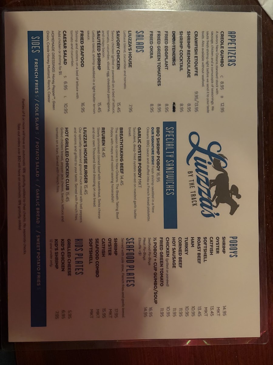 For families, Liuzza's offers a kid-friendly menu with options like Kid’s Chicken and Kid’s Shrimp, ensuring every member of the family finds something to satisfy their appetite.