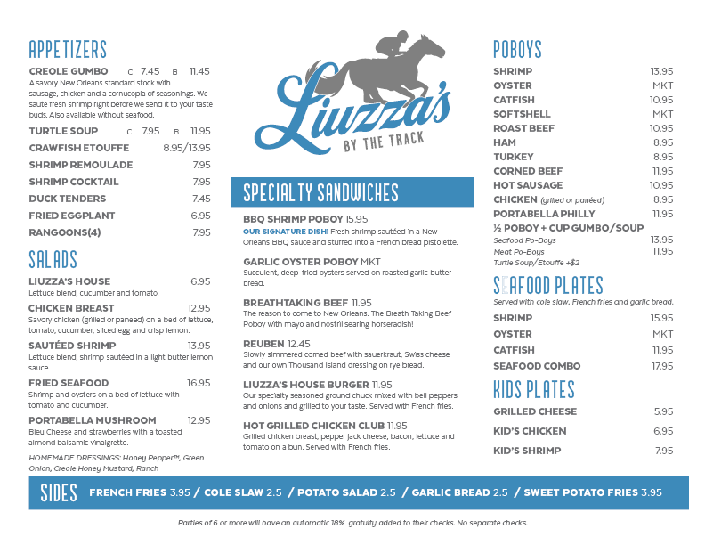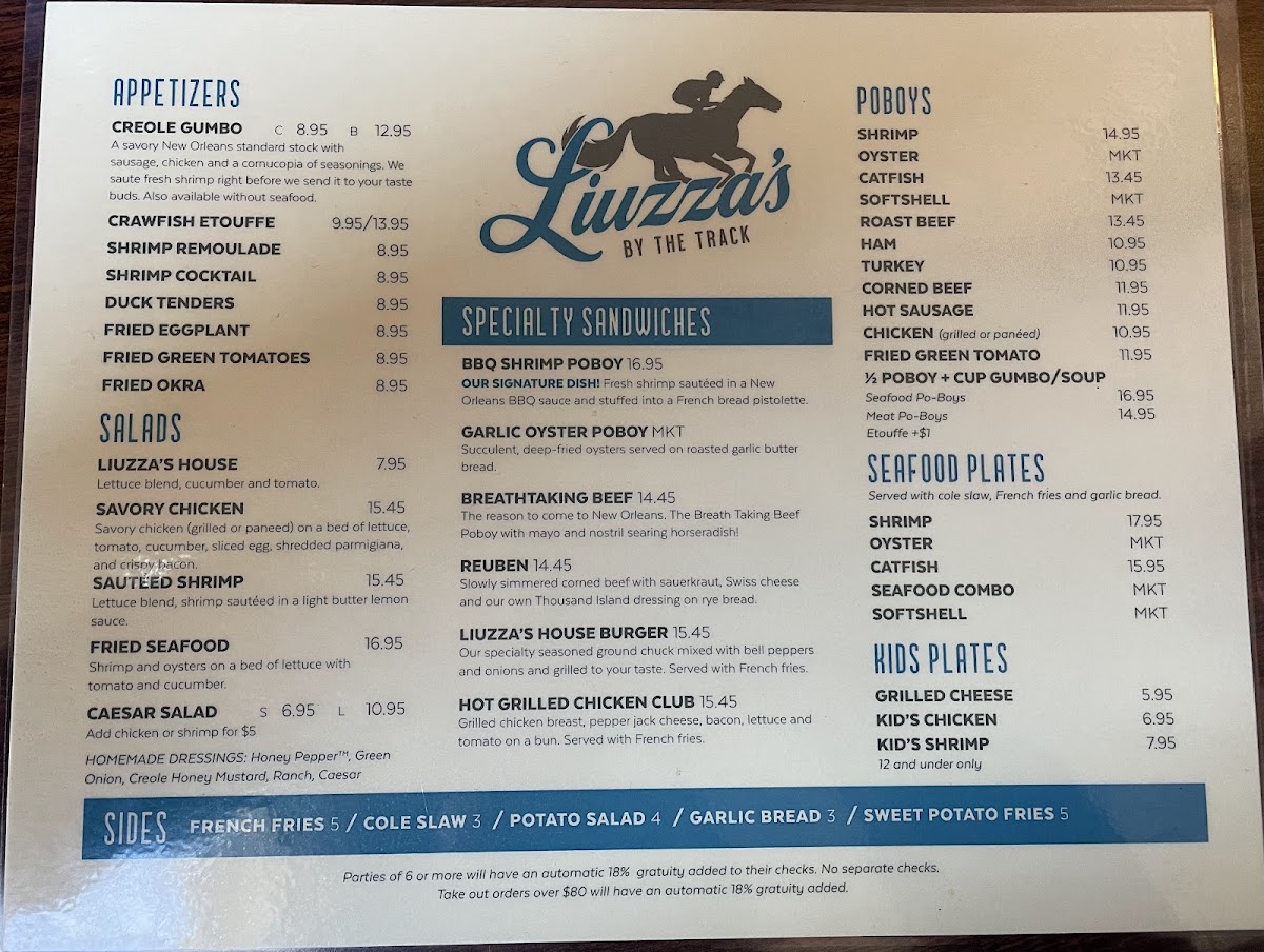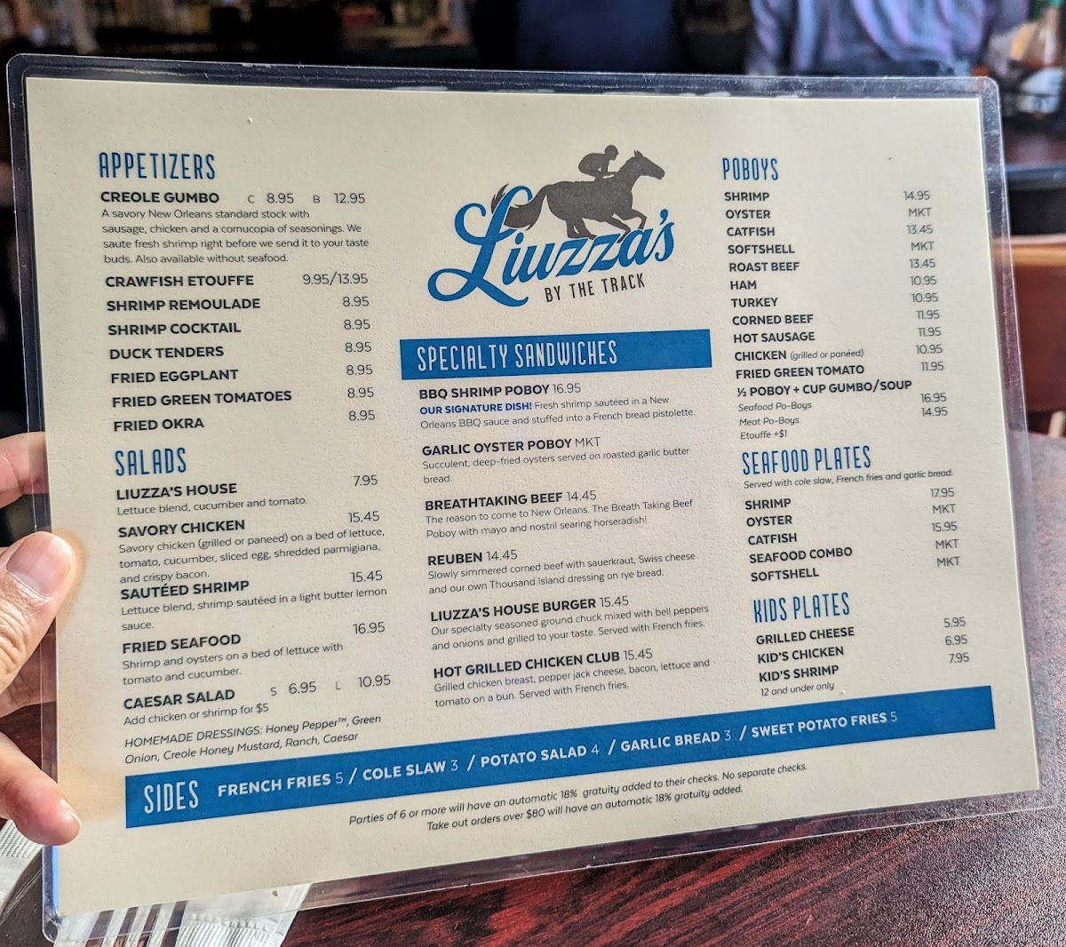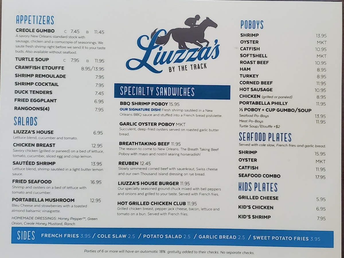 For families, Liuzza's offers a kid-friendly menu with options like Kid’s Chicken and Kid’s Shrimp, ensuring every member of the family finds something to satisfy their appetite.